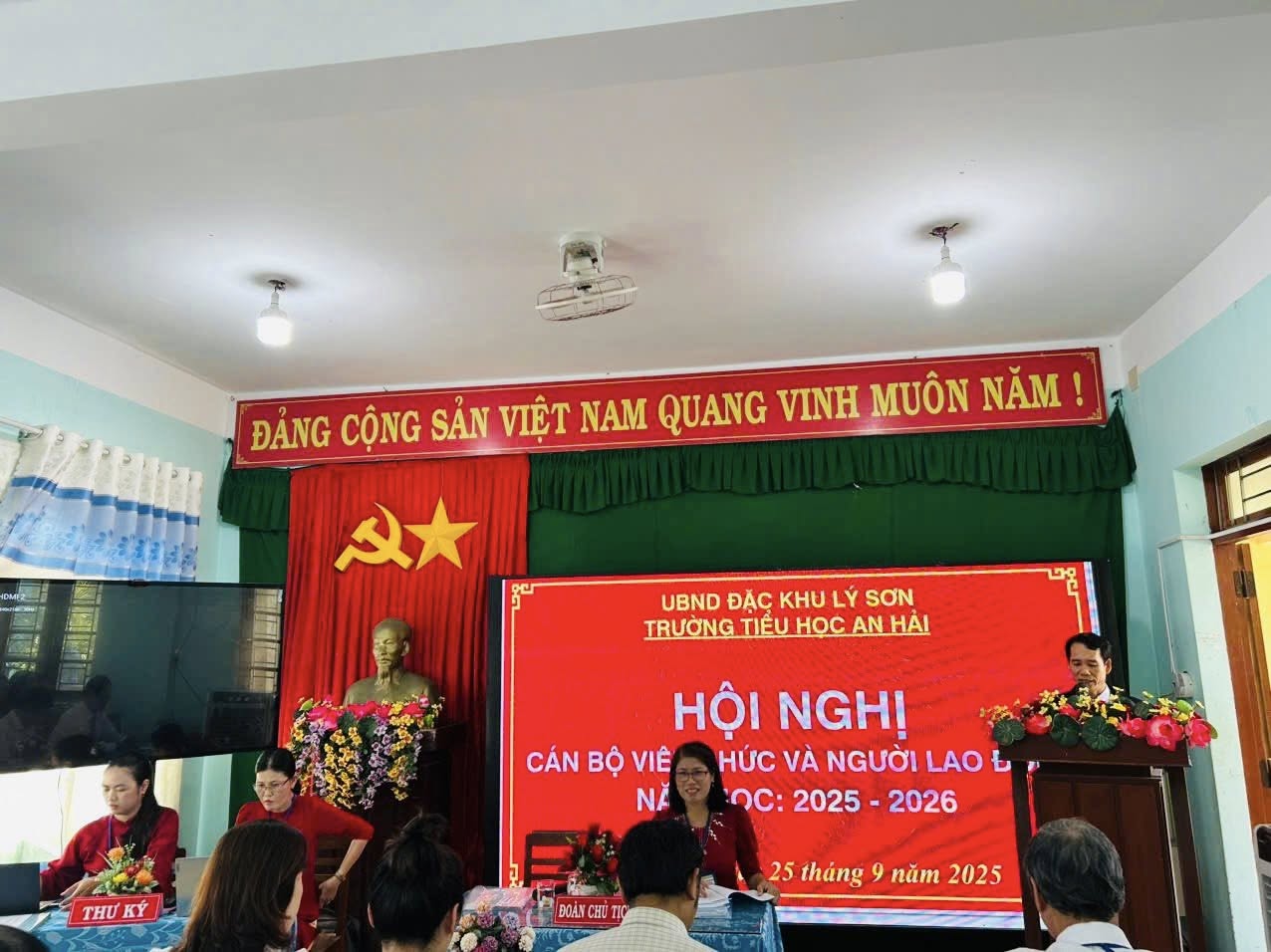 Thực hiện kế hoạch hoạt động giáo dục năm học 2025 – 2026, Trường Tiểu học An Hải tổ chức Hội nghị viên chức năm học 2025 – 2026, nhằm tổng kết kết quả thực hiện Nghị quyết năm học 2024-2025 và đề ra phương hướng, nhiệm vụ trọng tâm năm học 2025 – 2026.