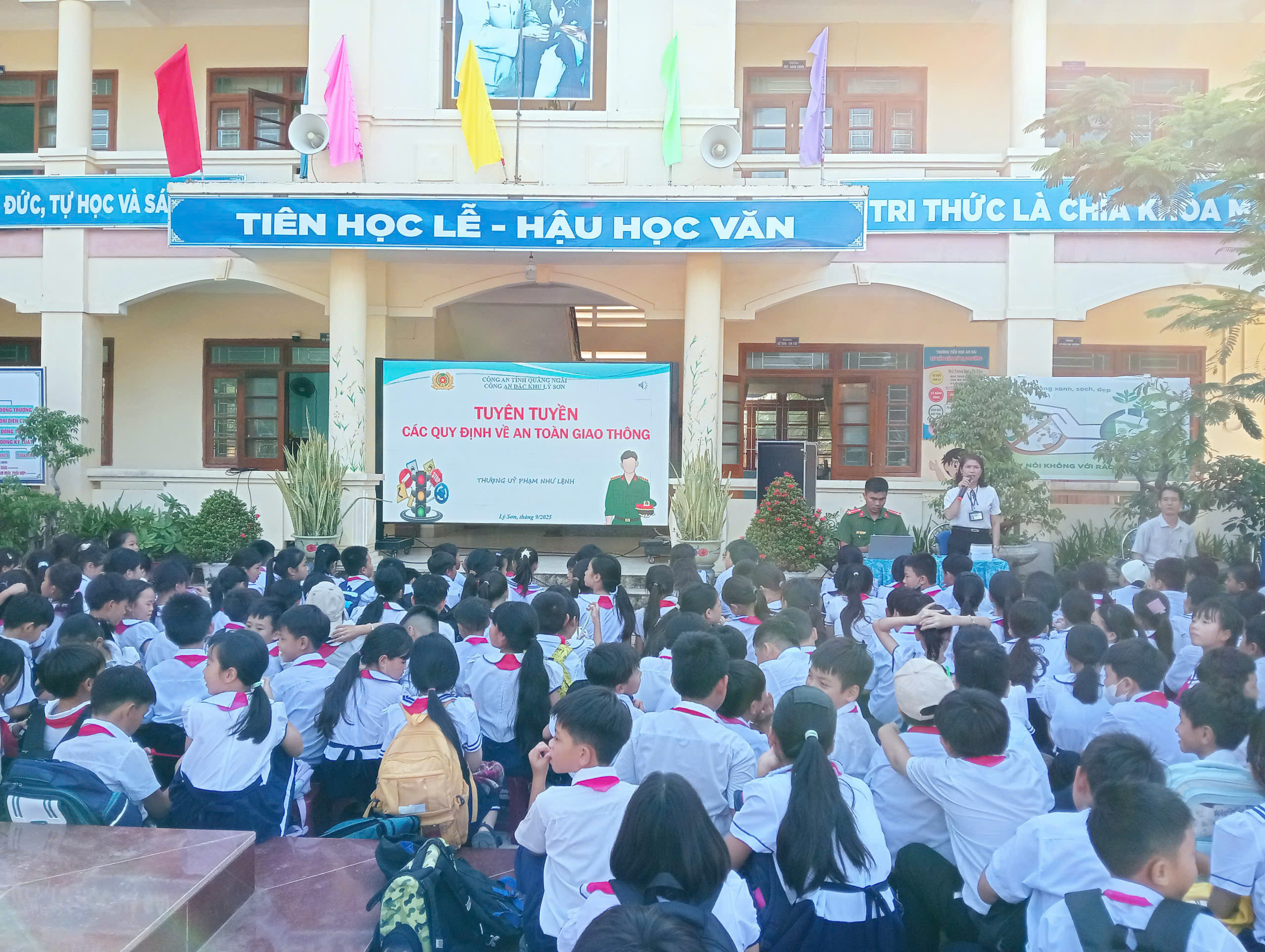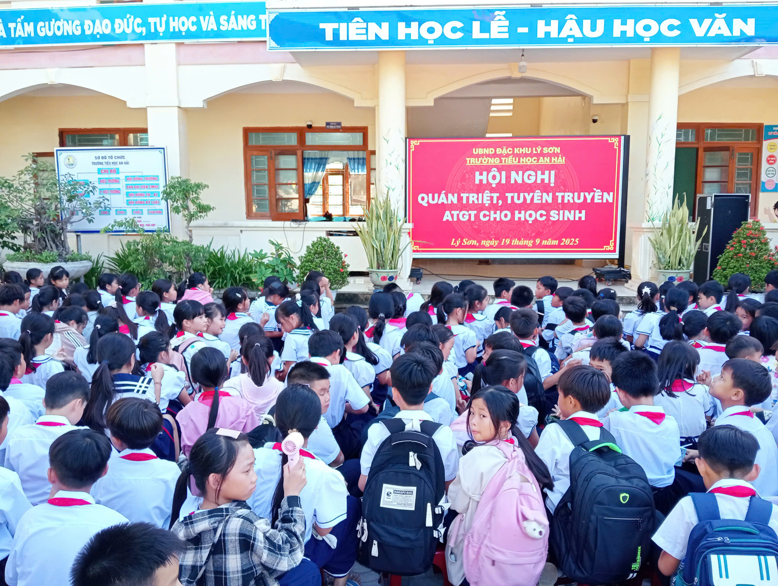 Nhân tháng cao điểm tuyên truyền pháp luật cho học sinh đến trường – Tháng 9; Trường TH An Hải đã chủ động phối hợp với Công an đặc khu Lý Sơn tổ chức quán triệt, tuyên truyền các quy định về ATGT cho học sinh.
